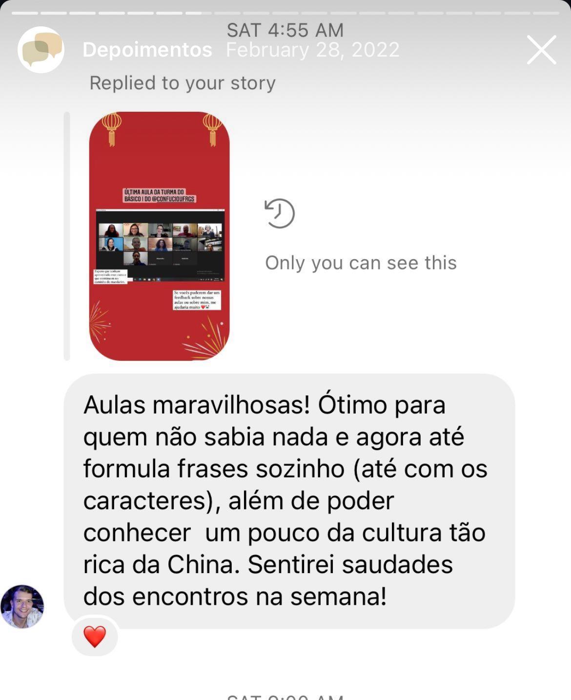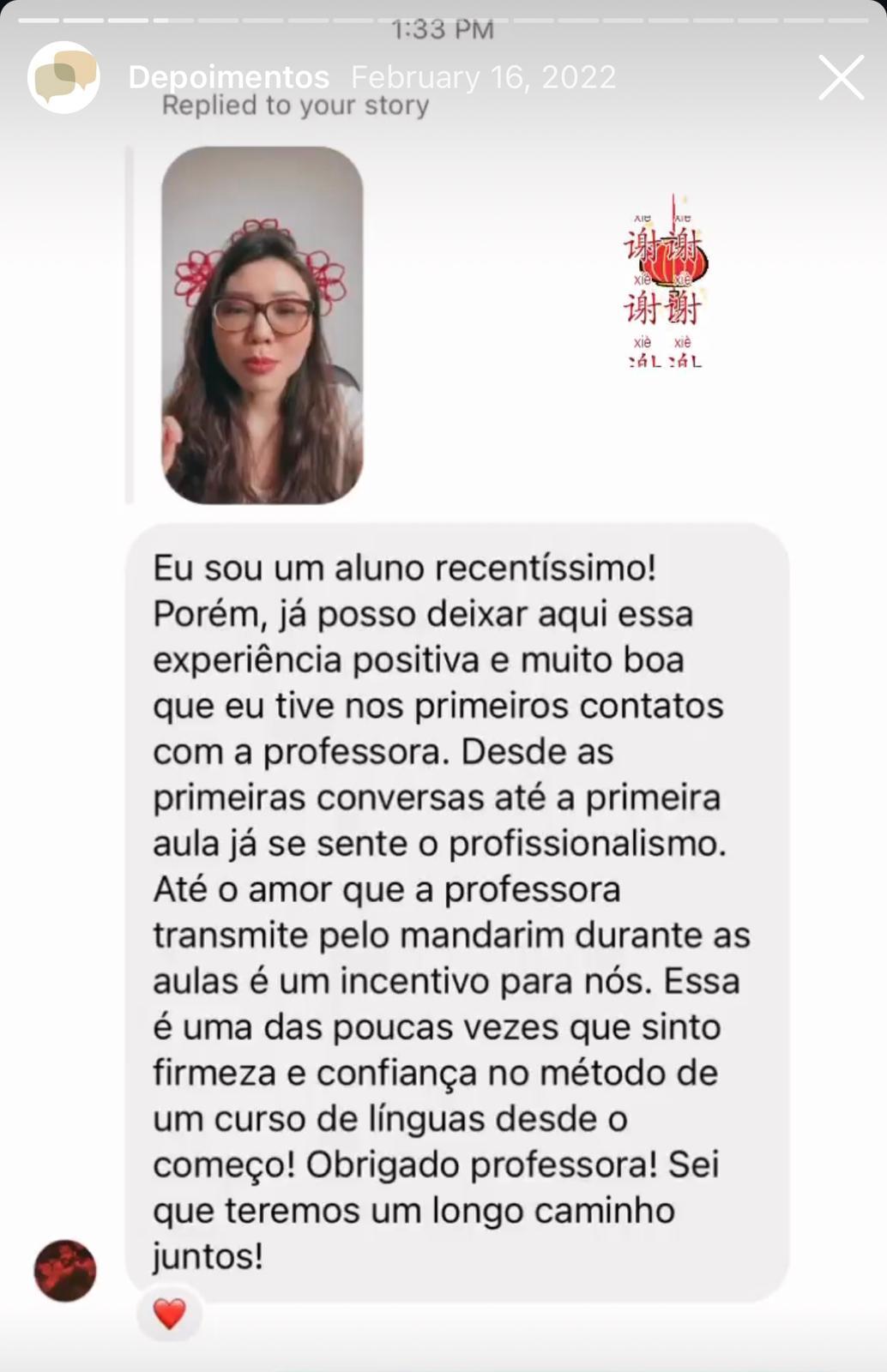 Carreira Profissional: Foi professora no Instituto Confúcio da UFRGS, atuou como intérprete para multinacionais chinesas e acumula mais de 6 anos de experiência no ensino de mandarim.